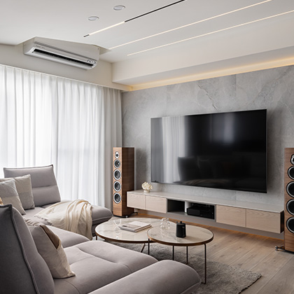 沙發區的設計刻意精簡,保留寬敞的走動空間。
