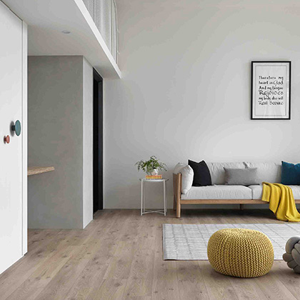 開闊寬敞的公領域,搭配大尺度的留白創造一個讓壓力自然釋放的環境在入口以鐵件結合男女屋主的英文名,隱藏了屋主兩人結合的意涵並以摩斯密碼將祝福的心意隱藏在當中